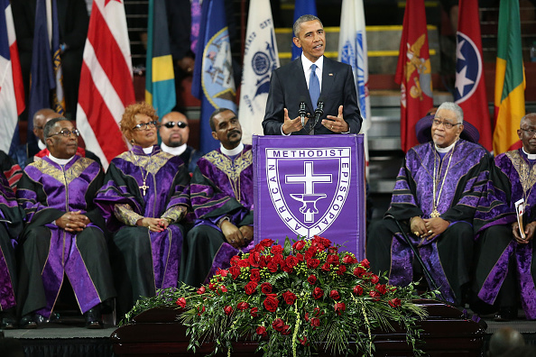 Delivers Eulogy And Rousing Rendition Of Amazing Grace At Funeral Today.
